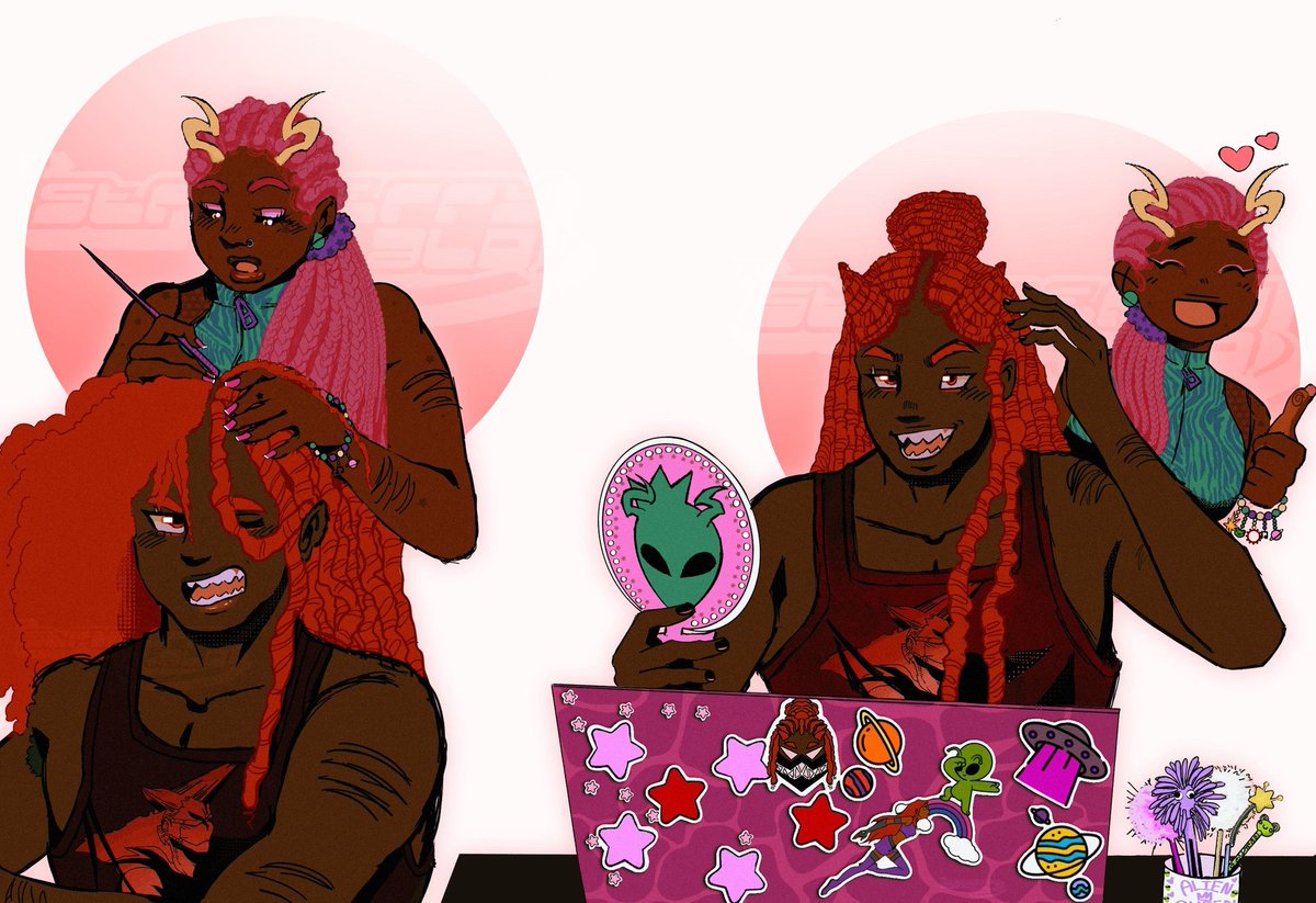 📍 happy #juneteenth2023 !! ⭐ I'm Jam and I draw alot of colorful stuff and mainly fanart mixed with ocs from time to time. Looking to get into Character Design in the future so any support would be extremely helpful !! 🫶🏾 📎: linktr.ee/Strwberryhalo