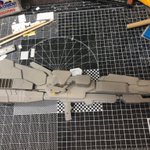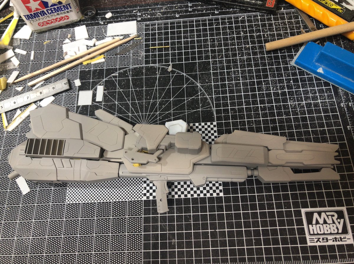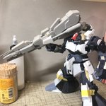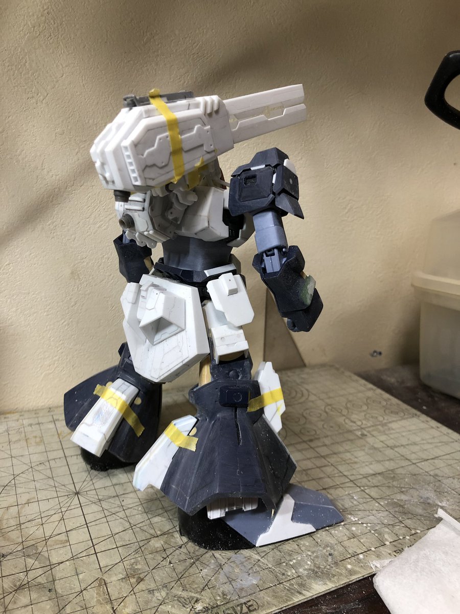 1 3 チマチマやってたFAZZ風なんちゃってメガカノンがだいたい形になったのでサフってみました。 傷直しは後にしてとりあえず背中をやっつけよう。 #リックディアス #ガンプラ 20/02/16 21:15