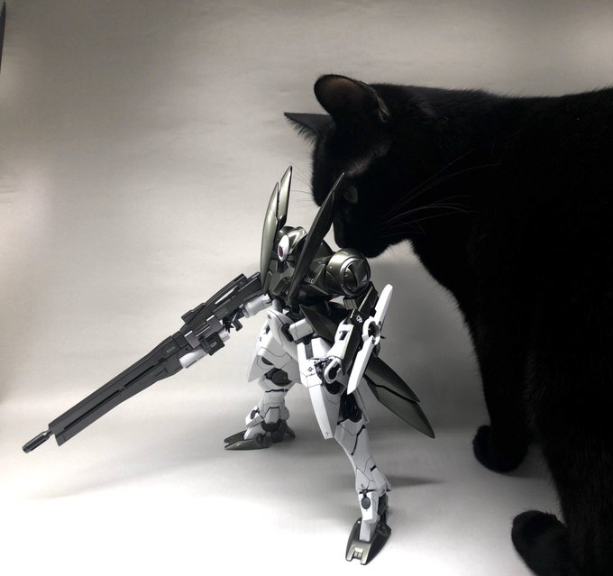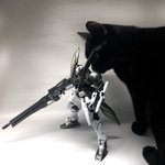 ジンクスが完成したんだけど撮影がうまくいかない モタモタしてたら猛獣に襲われるしまた今度撮影しよう😩 なっちん先輩は身だしなみチェック中👍 #ガンプラの画像を貼るとRTされると聞いて #MGジンクス