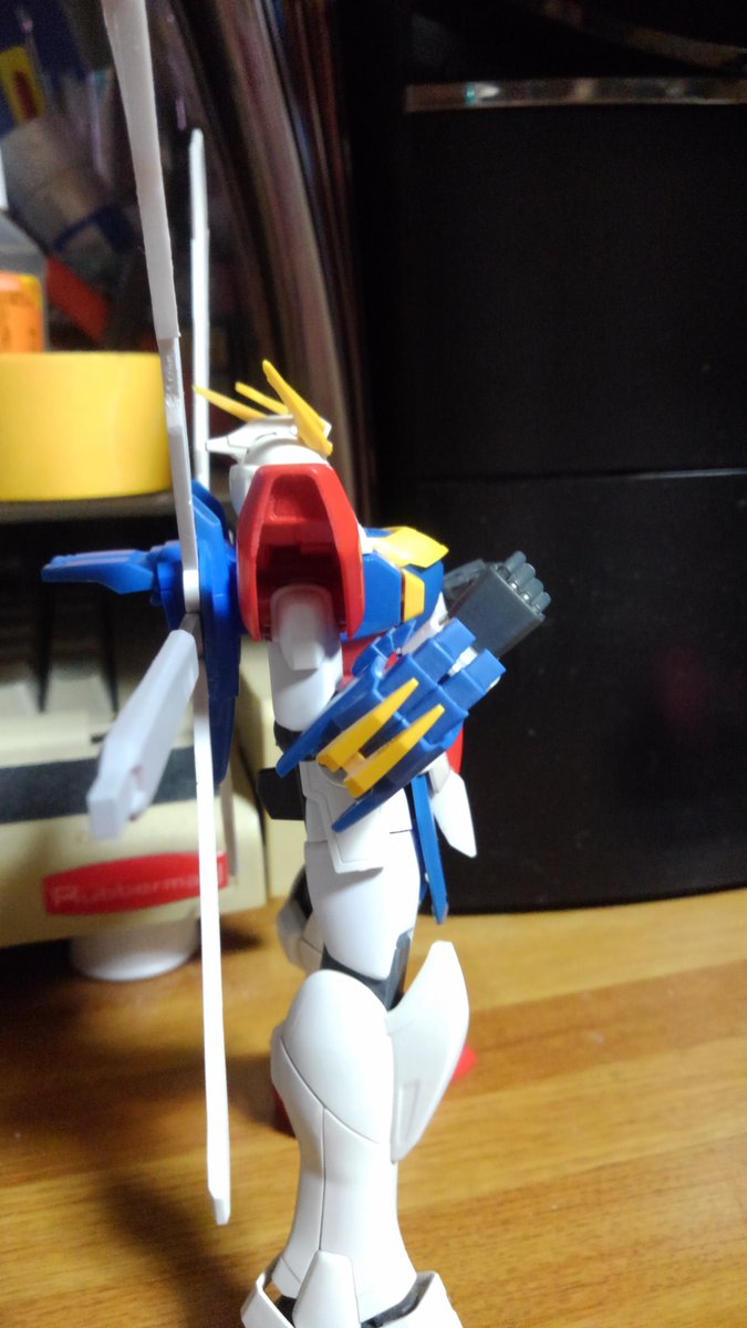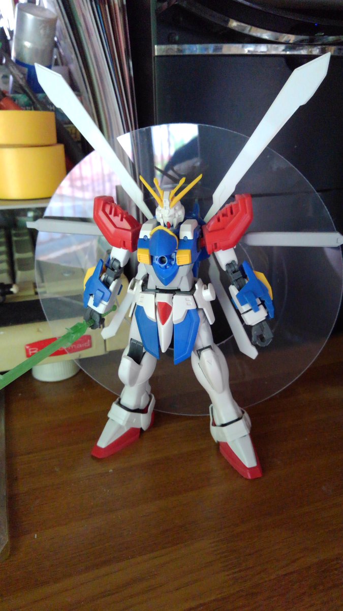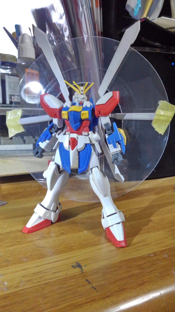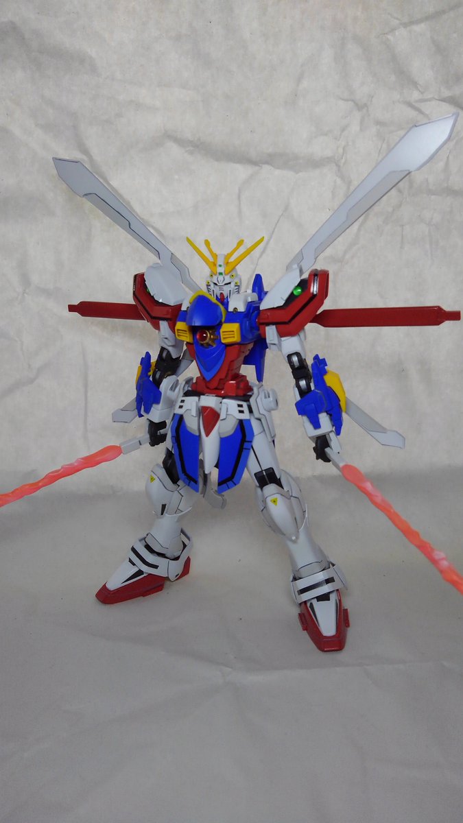HGFCゴッドガンダム エネルギー発生装置は展開させたときのサイズと腕の二重関節化によりどの程度曲がるかの確認 右腕が二重関節、左腕がキットのままです (作ってるときはもうちょっとまがる気がしたんだけどなー) #ガンプラ好きと繋がりたい #ガンプラの画像貼るとRTされると聞いて