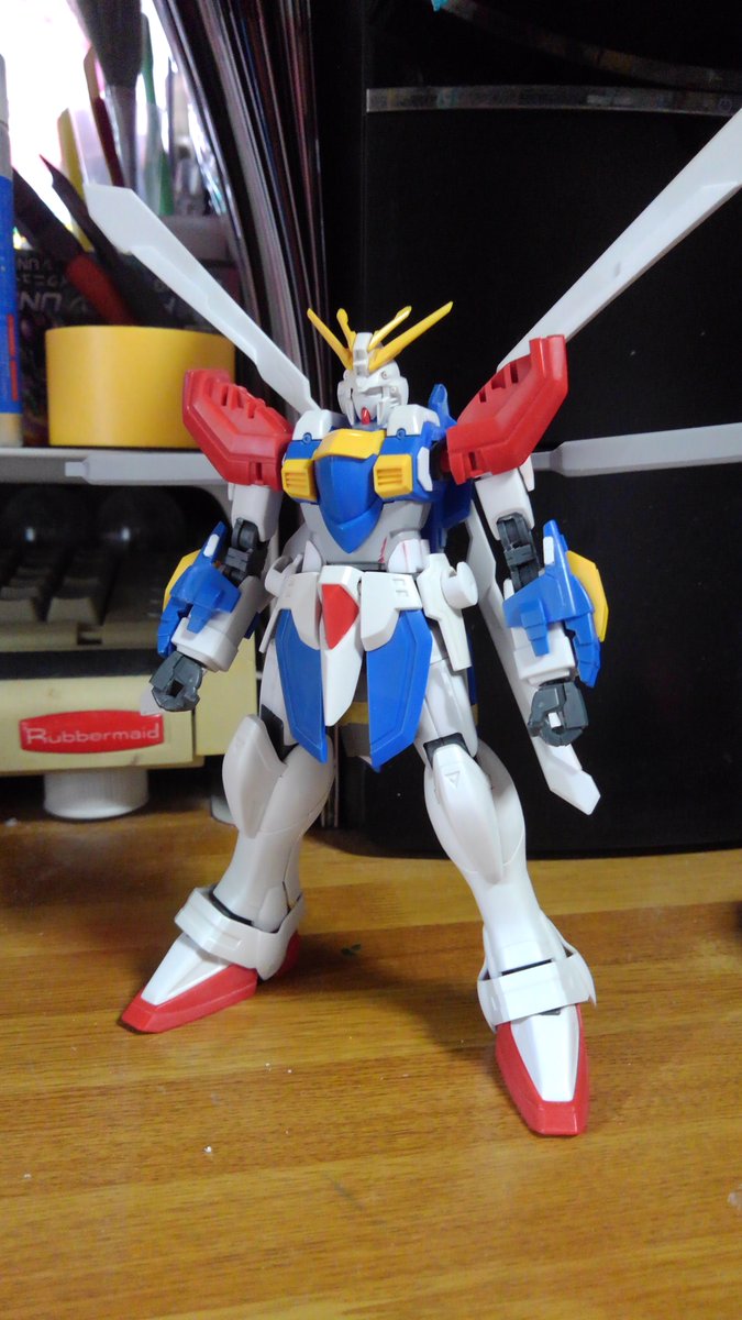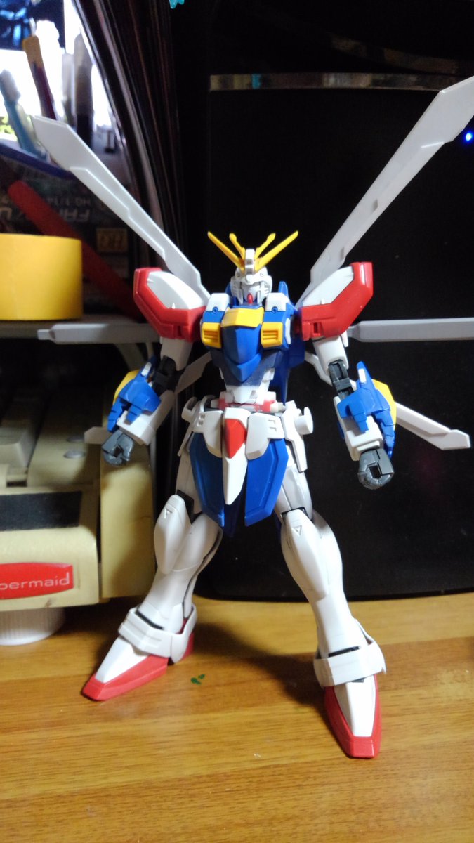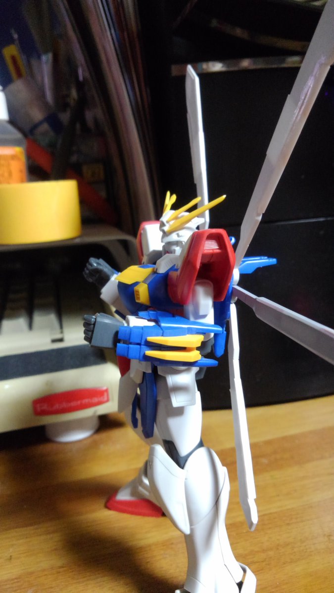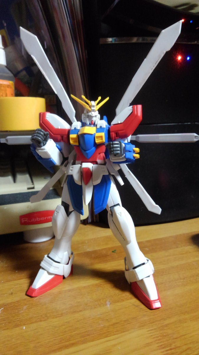 HGFCゴッドガンダム エネルギー発生装置は展開させたときのサイズと腕の二重関節化によりどの程度曲がるかの確認 右腕が二重関節、左腕がキットのままです (作ってるときはもうちょっとまがる気がしたんだけどなー) #ガンプラ好きと繋がりたい #ガンプラの画像貼るとRTされると聞いて
