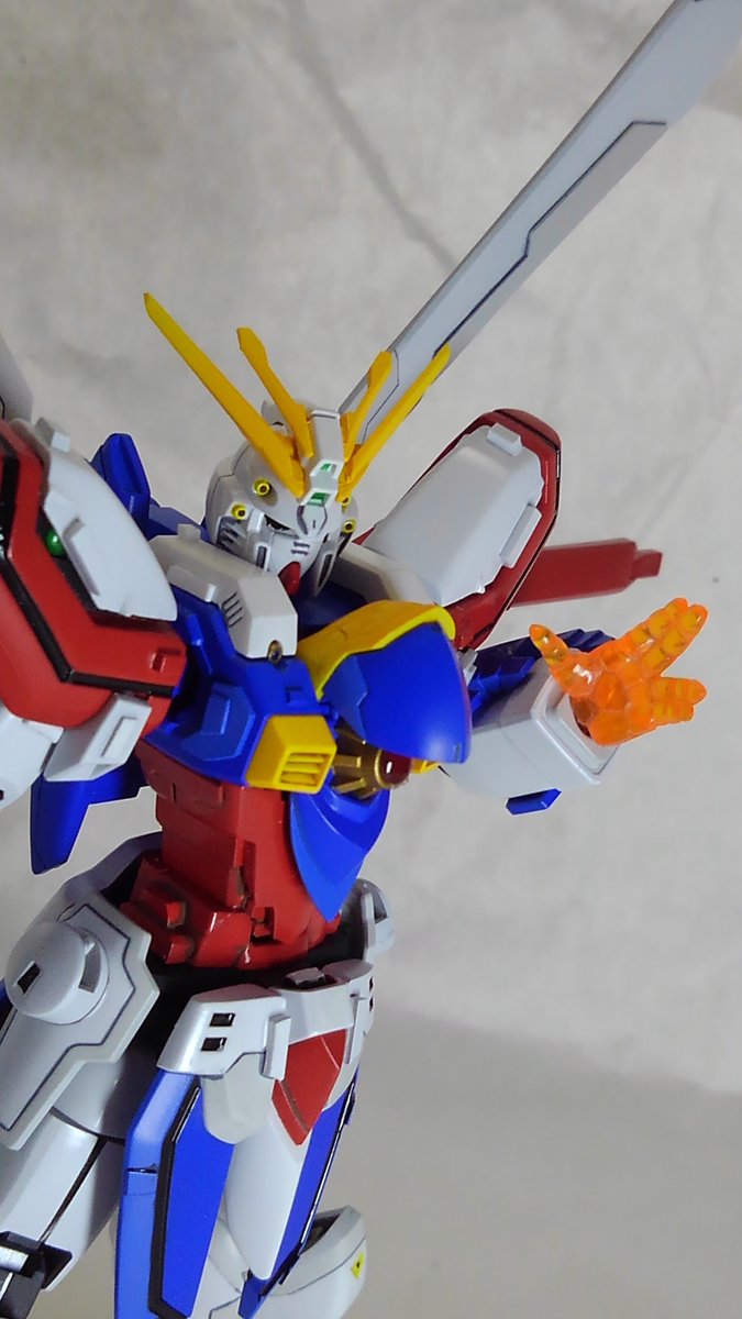 HGFCゴッドガンダム 大きくいじったパーツにサフを吹いて表面を整えています 見た感じ余り進んでいないですね イベントで購入した剣を持たせてみましたが、石破天驚剣とか作ってみるのも良いですね #ガンプラ好きな人と繋がりたい #ガンプラの画像を貼るとRTされると聞いて