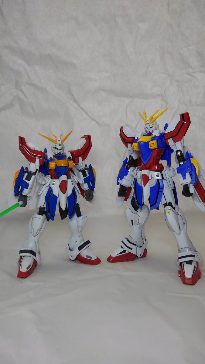 ダブルゴッドガンダム 世紀末に作成した旧1/144と一緒に 模型誌の作例を見ながら作っていたのを覚えています エアブラシを購入する前なので、明確に覚えている分では最後の筆塗り完成品になります #ガンプラ #ガンプラ好きと繋がりたい #ガンプラの画像を貼るとRTされると聞いて