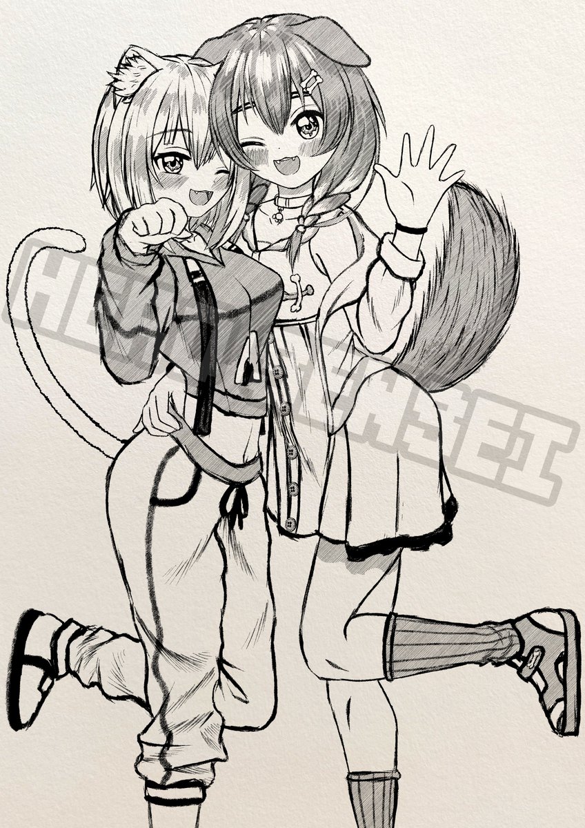 a nice sketch by vtubers Inugami Korone and Nekomata Okayu hope you like it🍉 #hololivefanart #Vtubers #draw #sketchbook #sketchart #sketch #arte #Digital #animetwt #animegirl #AnimeArt #できたてころね #ドロー #ドローイング #アートシーン #アート好きな人と繋がりたい #絵かゆ