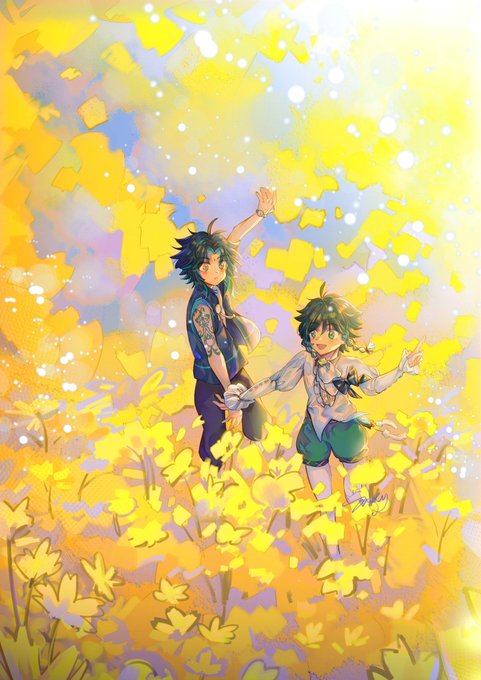 金色花田🌼 #魈ウェン #原神 #Genshinfanart #GenshinImpact #xiaoven #venti #xiao #魈温 #温迪 #魈