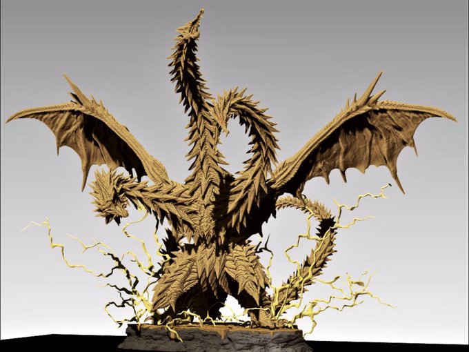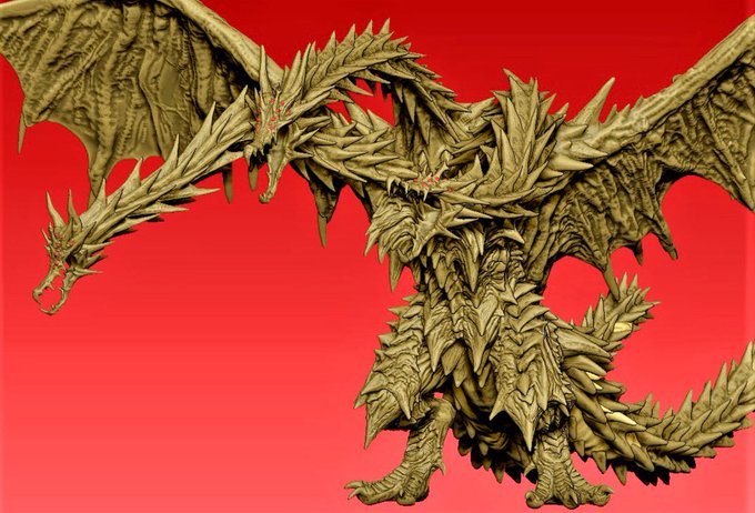 モデル出来ました。 3つの顔は回転させてもそれぞれ重なることなく、その上で違和感なくしっかり動きが感じられる造形にしました。 出力サイズは未だ決めかねています...。 #ゴジラ #ギドラ