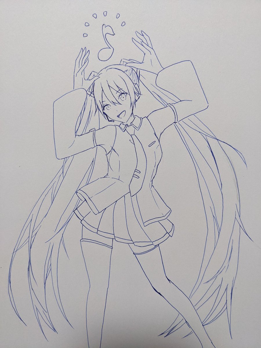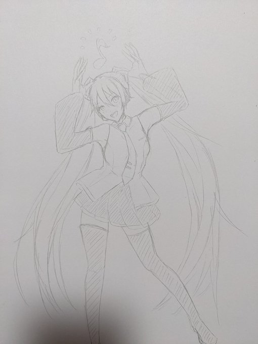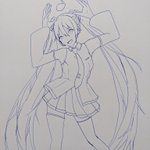 手直ってきたのでミクの日(3月9日)に向けて描き中… まだアナログだけどデジタルにする〜 #ミク #アナログ #イラスト