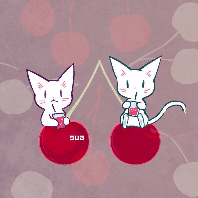 双子 #イラスト好きな人と繋がりたい #絵 #一日一絵 #サクランボ #猫 #イラスト