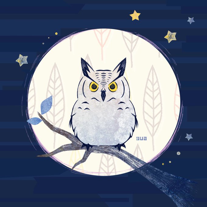 15 217 満月 #絵描きさんと繋がりたい #イラスト #一日一絵 #ミミズク #夜 #絵 21/06/25 20:48