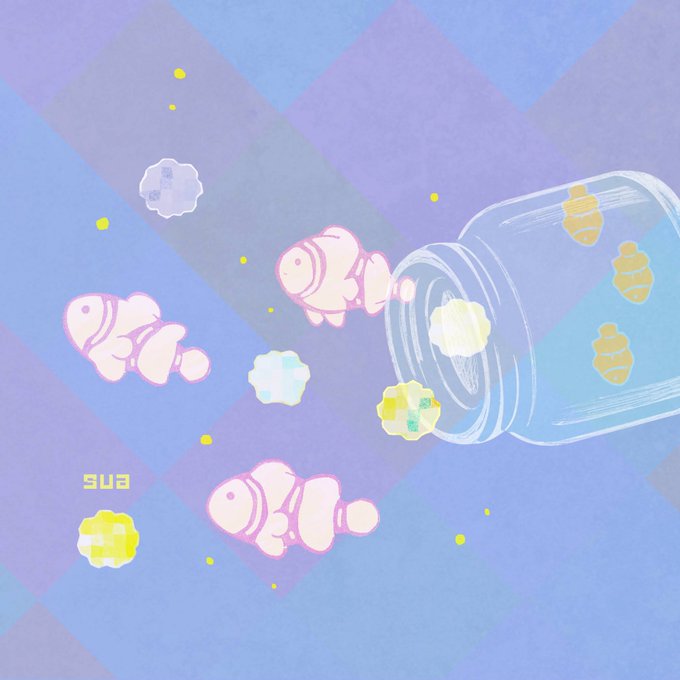 コンペイトウ #イラスト好きな人と繋がりたい #絵 #一日一絵 #クマノミ #金平糖 #水
