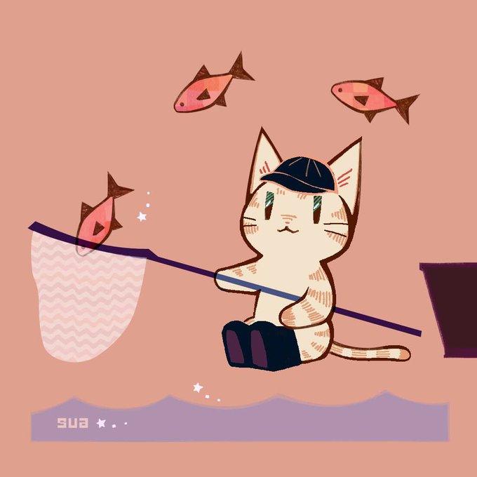 キャッチ #イラスト好きな人と繋がりたい #絵 #猫 #魚釣 #イラスト