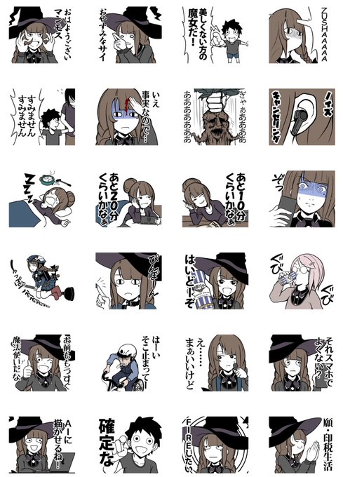 「現代社会に生きる魔女」のLINEスタンプ、ついに発売しました٩(ˊᗜˋ*)و🎉 日常的に、毎日使えるものばかり(?)なドロ子たちのスタンプ、よろしければ使ってみてください⃛ヾ(๑❛ ▿ ◠๑ ) store.line.me/stickershop/pr…