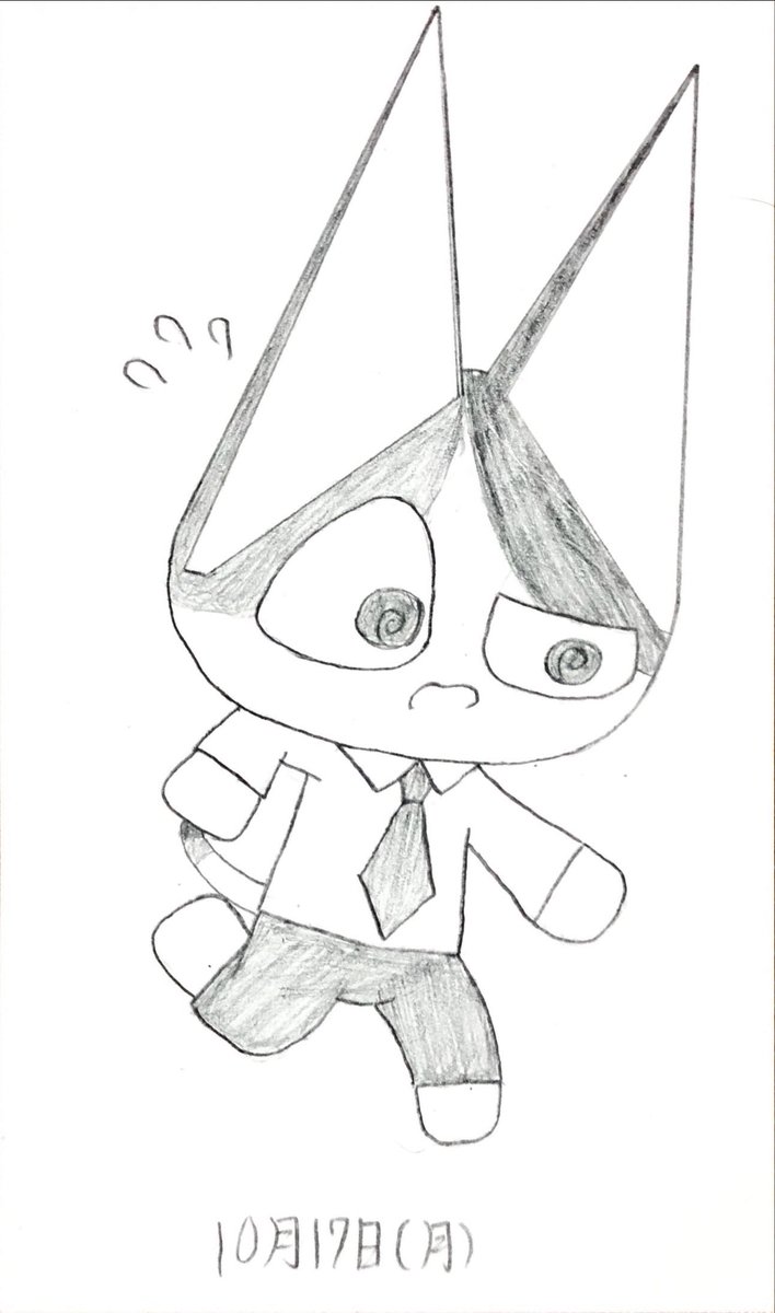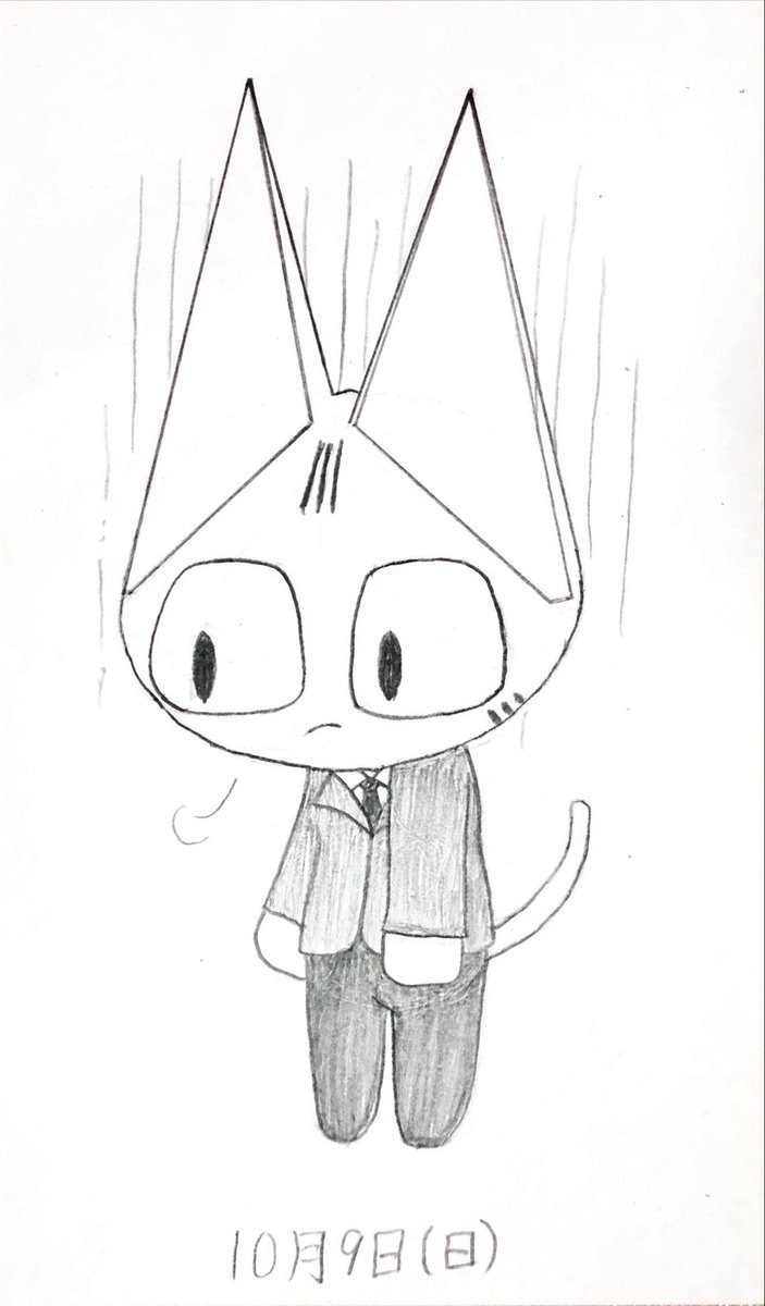 【1年間1日1絵】 10月9日(日) スーツ姿(デフォルト)のトラトロ! 仕事を嫌でも思い出し続けるから絶望してる