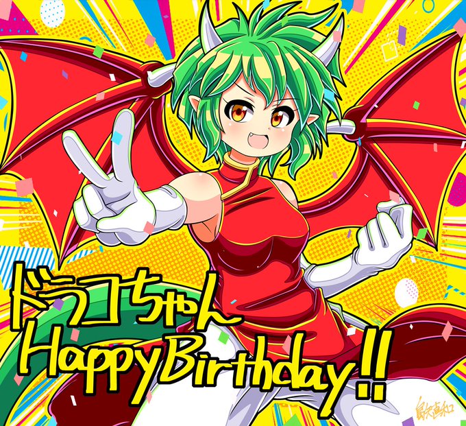 ぷよぷよのドラコちゃんが誕生日だったのでお祝いのイラストを描いてみました!! なんかもう2週間過ぎちゃってますが! 元コンパイルクラブ会員の魂は不滅なり… #ドラコケンタウロス生誕祭 #ドラコケンタウロス生誕祭2023