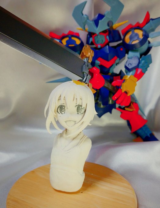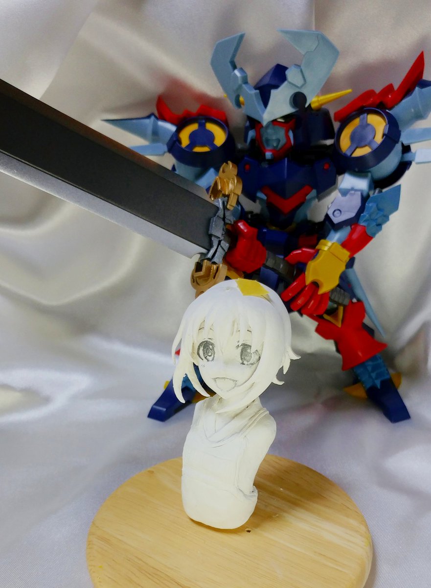 脇山珠美ちゃん、誕生日おめでとう!! 作りかけの胸像とスパロボコラボでの搭乗機、ダイゼンガーのツーショットで!! 大事なアホ毛を紛失してしまったので後でちゃんと作り直します! #脇山珠美生誕祭2020