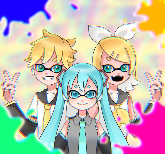 ボカロの3人をスプラ風に描いてみた! #鏡音リン #鏡音レン #初音ミク #スプラトゥーン #絵師さんと繋がりたい #無名絵師なので私をフォローして有名にしてください #フォロワー一万人以下の絵師が力作を投稿してたくさんのフォローを貰うタグ