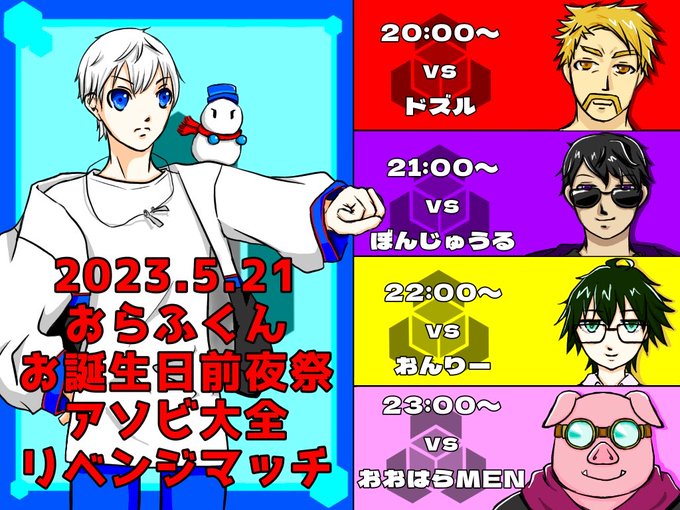 1 4 #見るかもわからん #おらふくん誕生祭 おらふくんお誕生日&アソビ大全初勝利おめでとうございます🎉 いつもFAにいいねもありがとうございます✨ 素敵な一年になりますように😊 23/05/22 00:00