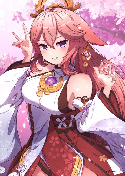 八重神子描いた!衣装激ムズ タグもやってみようと思います RT中心に回りますので何卒…!! #原神 #絵描きさんと繋がりたい