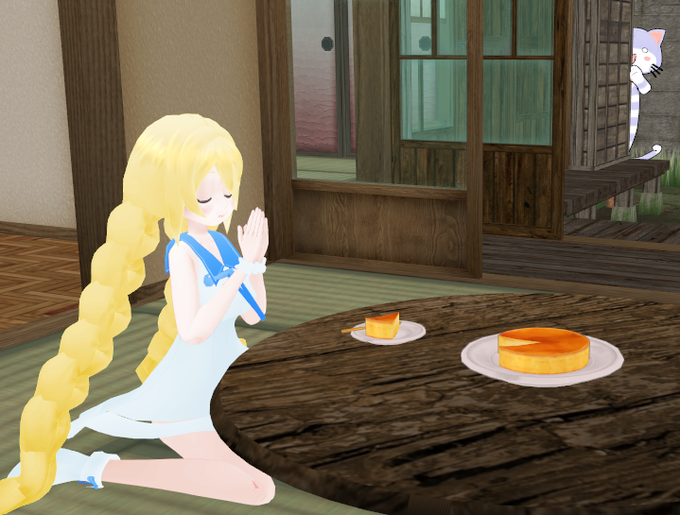 ありすちゃんのおやつタイム <お借りしたもの> 洋菓子セットver1.0:キャベツ鉢 様 seiga.nicovideo.jp/user/illust/75… ちょっと古い和風建築:シーダ 様 seiga.nicovideo.jp/user/illust/15… ちゃぶ台:澪姉 様 seiga.nicovideo.jp/user/illust/19… モデル:中島稔 様 twitter.com/pailmond_ #ありすのうつし鏡