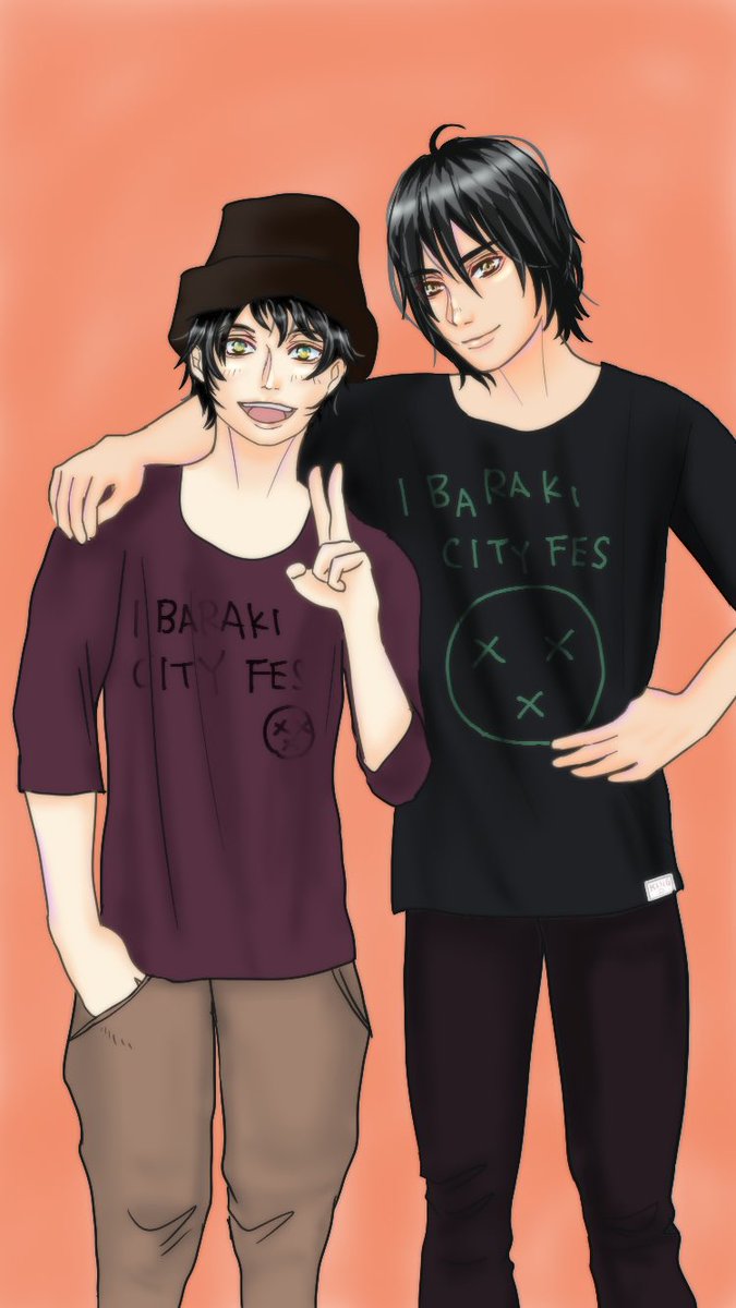 拓也とカイト。 隣の県のロックフェスに出た時の写真。カイトは弱冠16歳でピアノボーカルとしての才能を開花させていた。6歳上の兄の拓也はドラム。まだカイトがバイクでダム湖に落ちて死んだと思われる前のお話。 #イラスト #illustration