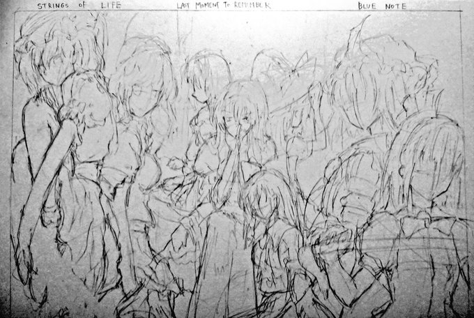 #このタグを見た人はラフ画とその完成絵を見せる 模写でもオリジナルでも基本はこうやって描いてます めっちゃ大まかなラフ画を描いてから修正していくスタイル。