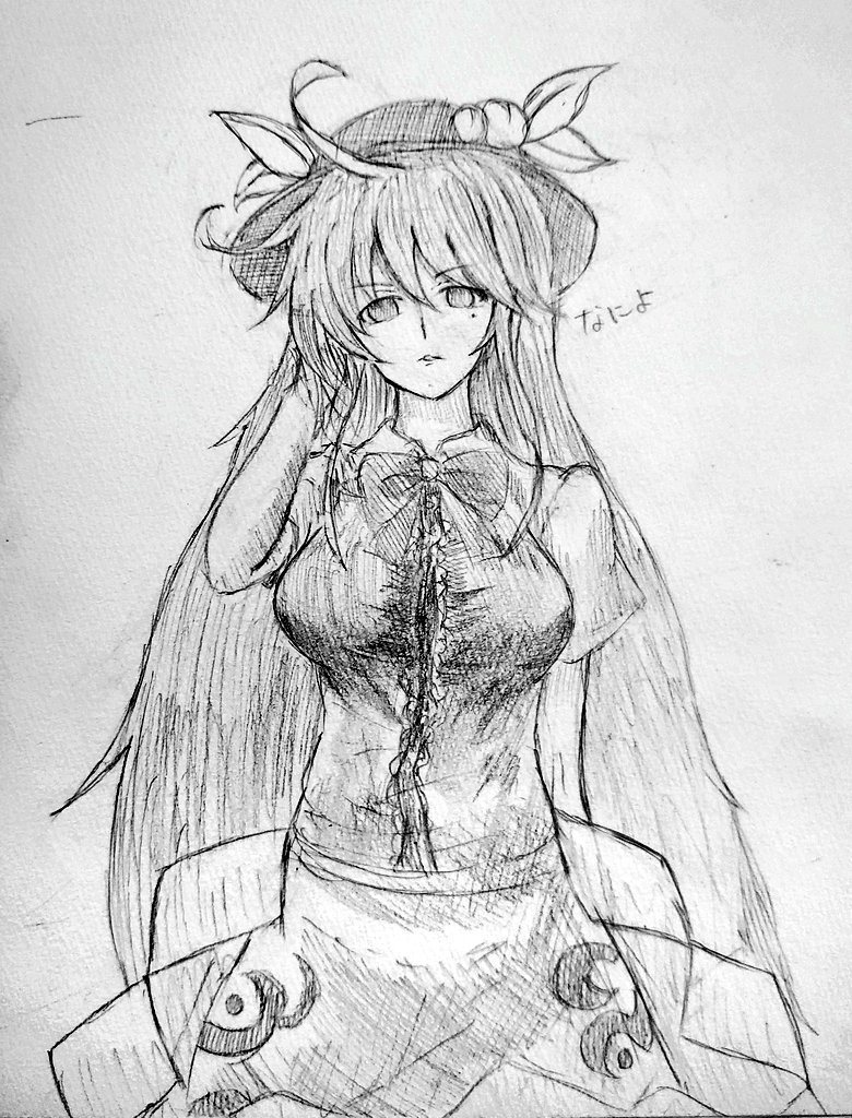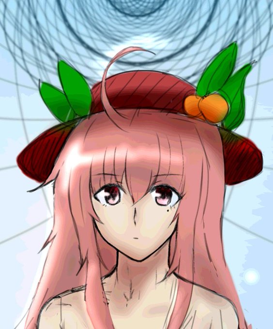 てんこちゃん描いてみました! てんこちゃんのキャラ設定よくわかりませんが、ドMって感じがしますね! とにかくかわいいです! #東方Project #比那名居天子 #絵描きさんと繋がりたい