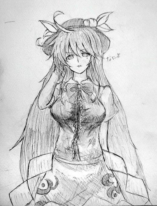 11 58 てんこちゃん描いてみました! てんこちゃんのキャラ設定よくわかりませんが、ドMって感じがしますね! とにかくかわいいです! #東方Project #比那名居天子 #絵描きさんと繋がりたい 19/11/24 21:59