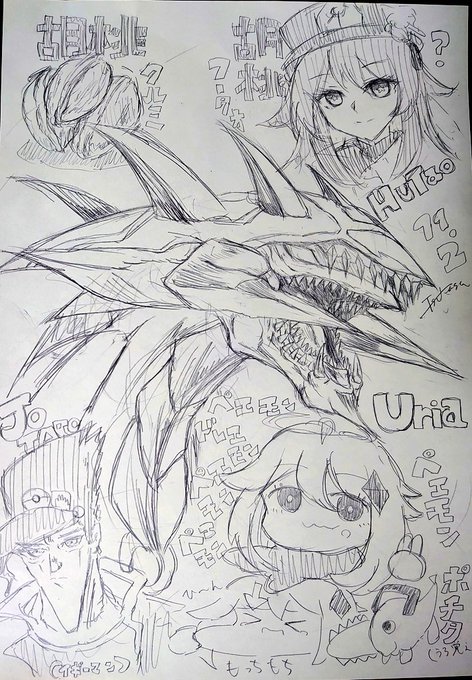 ウリア模写ったらスペース余ったので適当に落書きしてたら思った以上にわちゃわちゃしてもうた。