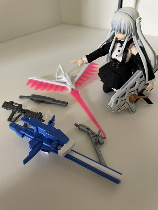 She also searched for some gunpla armaments to try new stuff Yeah of course that she got THIS SPECIFIC ONE!!! Poor gungnir its forgotten now! #アサルトリリィドール部