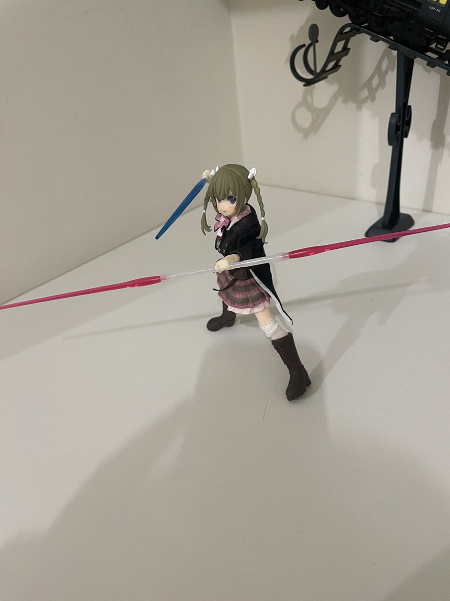 Apparently Luccia found her favorite beam saber. She got the double beam saber from mu HG Infinity Justice Gundam to show off And she also got a cute pair of blue bem saber! Never knew that she could use swords and sabers with both hands!!! #アサルトリリィドール部