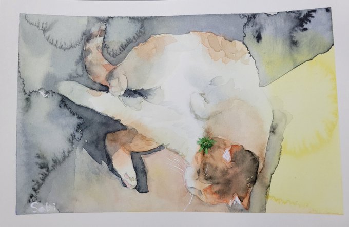 6 77 シュミンケ8色練習② この紙、随分前に1枚だけ貰ってたのやっと使えた。 #猫 #シンガプーラ #透明水彩愛好会 #水彩画 #アナログ絵 23/07/10 22:24
