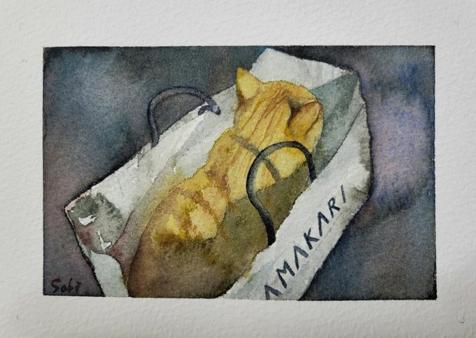 「…ひとりにしてちょうだい」(没) やり過ぎた〜。ダークサイドに堕ちてしまった😂本当は違うテーマがちゃんとあります。 描き直す👍 #猫 #水彩画 #透明水彩 #透明水彩愛好会 #透明水彩研究会 #透明水彩家のつどい