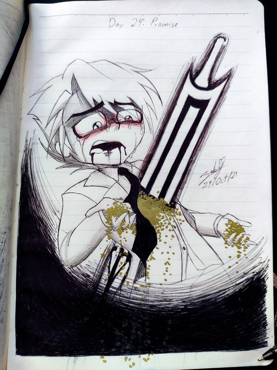 #Umitober day 29: Promise "I didn't lose heart... And I finaly..... Made it there in the end... So why did you lose heart... Without waiting for me? You aren't the one who's been forcing an endless torture on someone else...... It's me!!" #Umimonth #inktober2021
