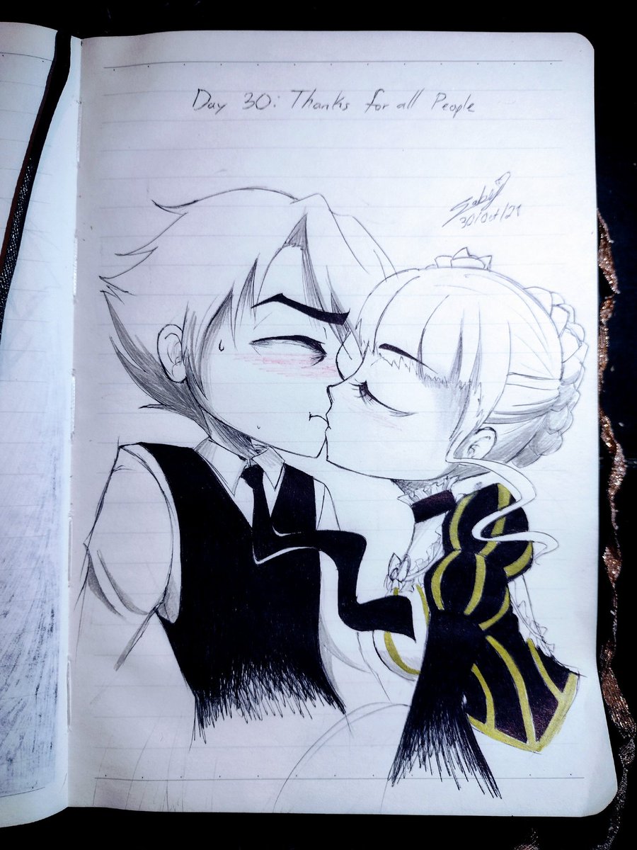 #Umitober day 30: Thanks for all People "As soon as Battler shut his eyes... Soft lips... Covered his." #Umineko #WTC #うみねこのなく頃に #inktober2021