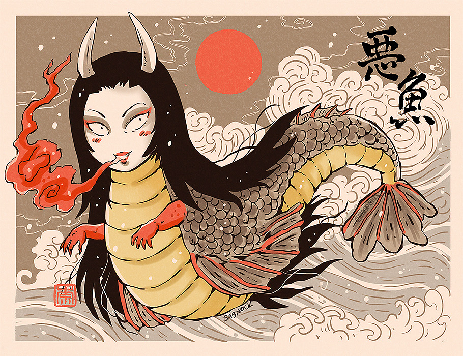 instagram.com/p/CVY1njCvlsW/ #Yokaitober Day 10. Kiyohime - 清姫~✨ #art #妖怪 #ayokaiaday #イラスト #drawing #yokai
