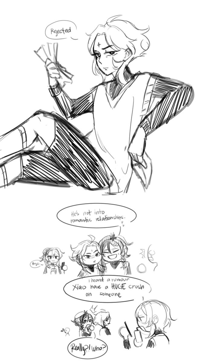 Young master xiao and his "childhood friend" is in denial Lumine is confused on how her friends stupid #xiaoven #venxiao #lumine #venti #xiao #GenshinImpact #genshinimpactfanart