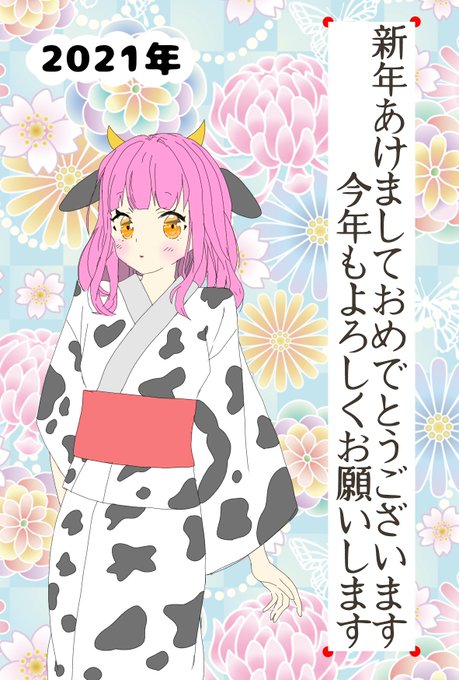 1 4 完成したぜ!!!! めっちゃ時間かかっちゃった💦 浴衣なんだけどパジャマみたいw #あけおめことよろ #丑年 #2021年 #年賀状 #描いてみた #アイビスペイント #牛 #擬人化 #浴衣 21/01/01 01:53
