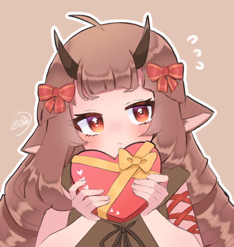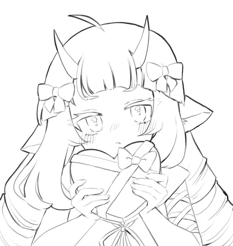 ハッピーバレンタイン! チョコ色デルミンちゃんからいつも一緒に戦ってくれる貴方へ贈り物があるようです💝 用事があるのでちょっと急ぎクオリティだけどここまで!🥲 線画可愛かったので見せちゃう #コンパスお絵描き #バレンタインイラスト