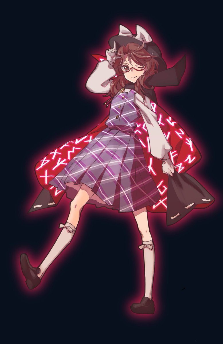 赤縁メガネ、マント、手袋、チェックのジャンパースカート…フェチの塊か #フォロワーさんの推しが描きたい #東方project