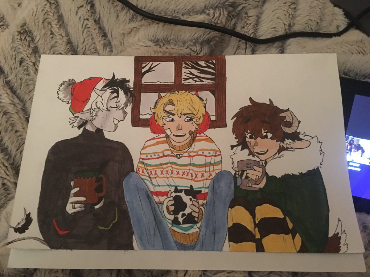 my friend better love their Christmas card, this took me all day lmao ( ̄∀ ̄) #ranboofanart #tommyinnitfanart #tubbofanart #benchtriofanart