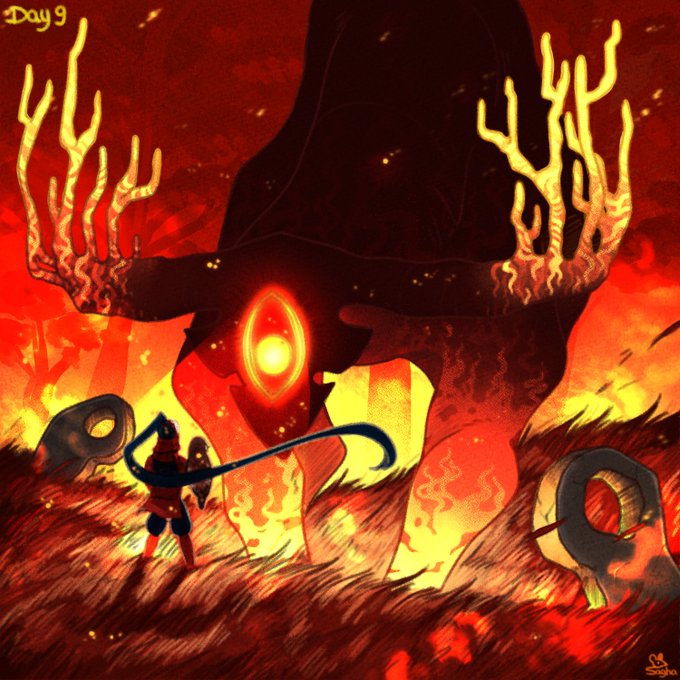 Day 9: The pathless Big boy Cernos and the hunter Fanartober buddies @cecro_ @Froheart #inktober2022 #fanart #thepathless