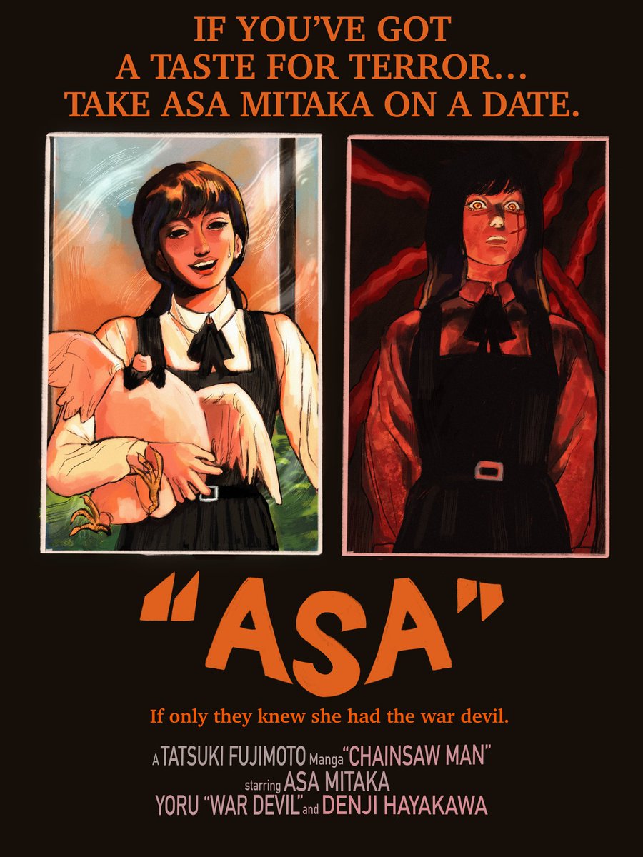 Late chainsaw man Tuesday chainsaw man art time (Jumping on the parody posters for chainsaw man…I think Asa and Carrie are very similar….) #csm124 #csm #chainsawmanfanart #chainsawman #asamitaka #yoru