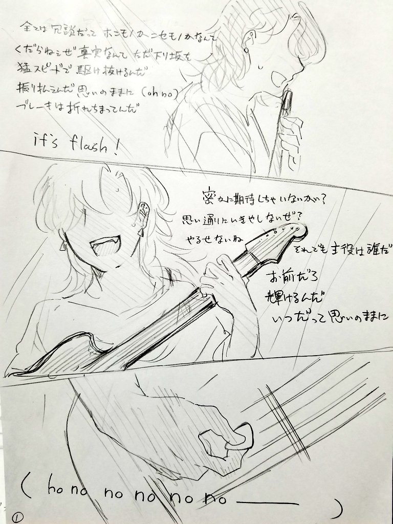 3 4 ヤング黒サンとエヌ、コピバンif落書き。歌詞はKing Gnuの「Flash!」。 22/04/27 14:43