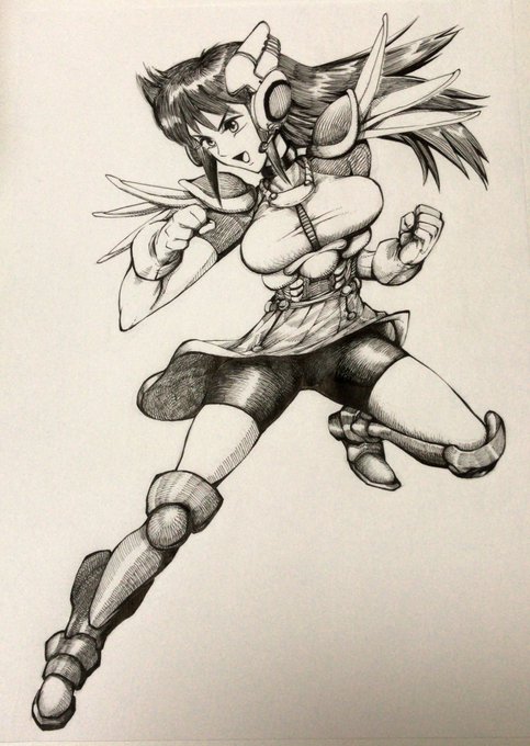 カッコイイ女剣士描けた。 #イラスト #ペン画
