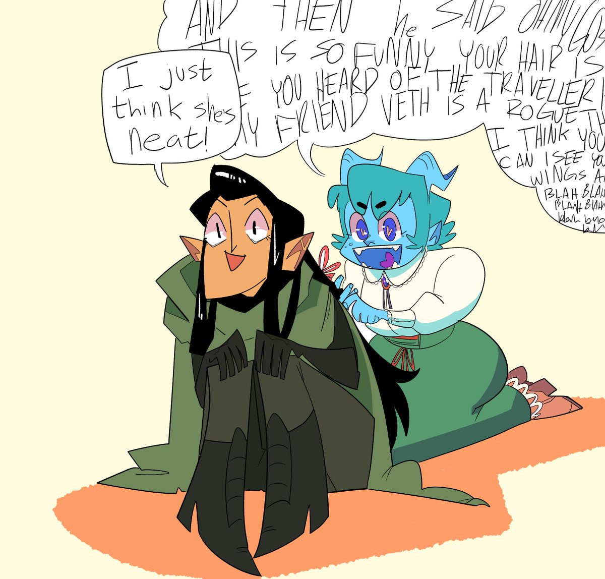 this morning I thought about how Vax would probably meet Jester and be filled with the inexplicable urge to kill for her and so I had to draw it #CriticalRole #criticalrolefanart