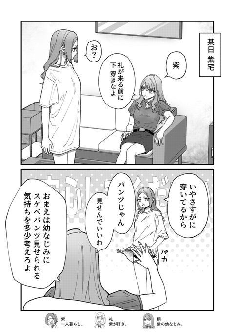 自宅だからとリラックスしすぎの女(1/2) #創作百合 #パンツの日
