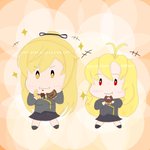 公式のツイートを見て突貫工事で描いたので半分くらい差分ですがフォンテーヌと一緒にそれぞれのプレゼントのミニツリーを飾り付けしたフライブルク&フライブルク人形 #ミストレ #ミストレイラスト #フライブルク誕生祭 #笑顔を皆にフライブルク誕生祭
