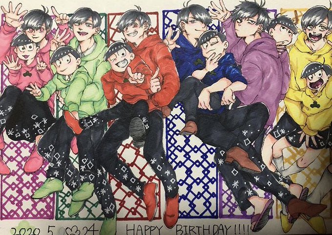 6つ子❤️💙💚💜💛💖 #おそ松さんファンアート #イラスト