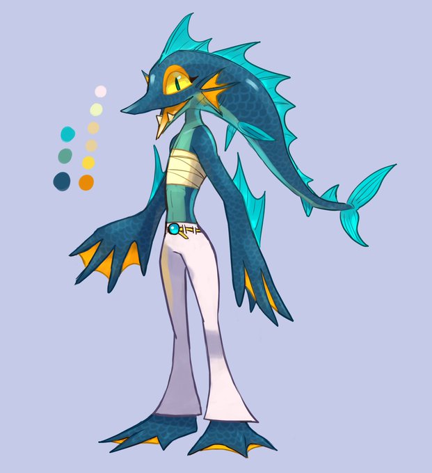 5 15 前にツイートした分身候補に自分の趣味を足してみました。その結果頭身が高くなり、尾が頭に移動。モチーフはミズウオ。色はかなり気に入っているがグリーンを名乗るには青すぎる。 21/09/13 22:14