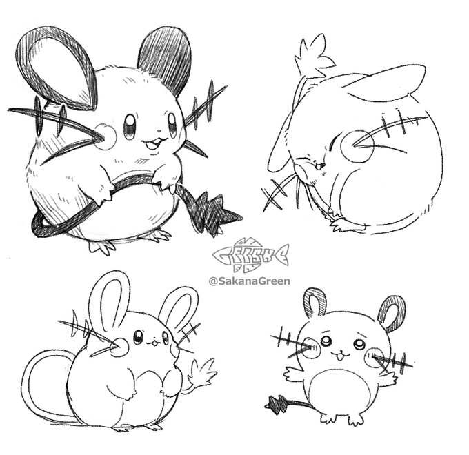 54 193 デデンネいろいろ。 初期のどっしりしたピカチュウと似たフォルムでかわいい。眠りネズミの別名があるらしいけど、正直それほど寝坊助の印象はないなぁ… 描いたポケモン(24/806) 22/09/11 03:09